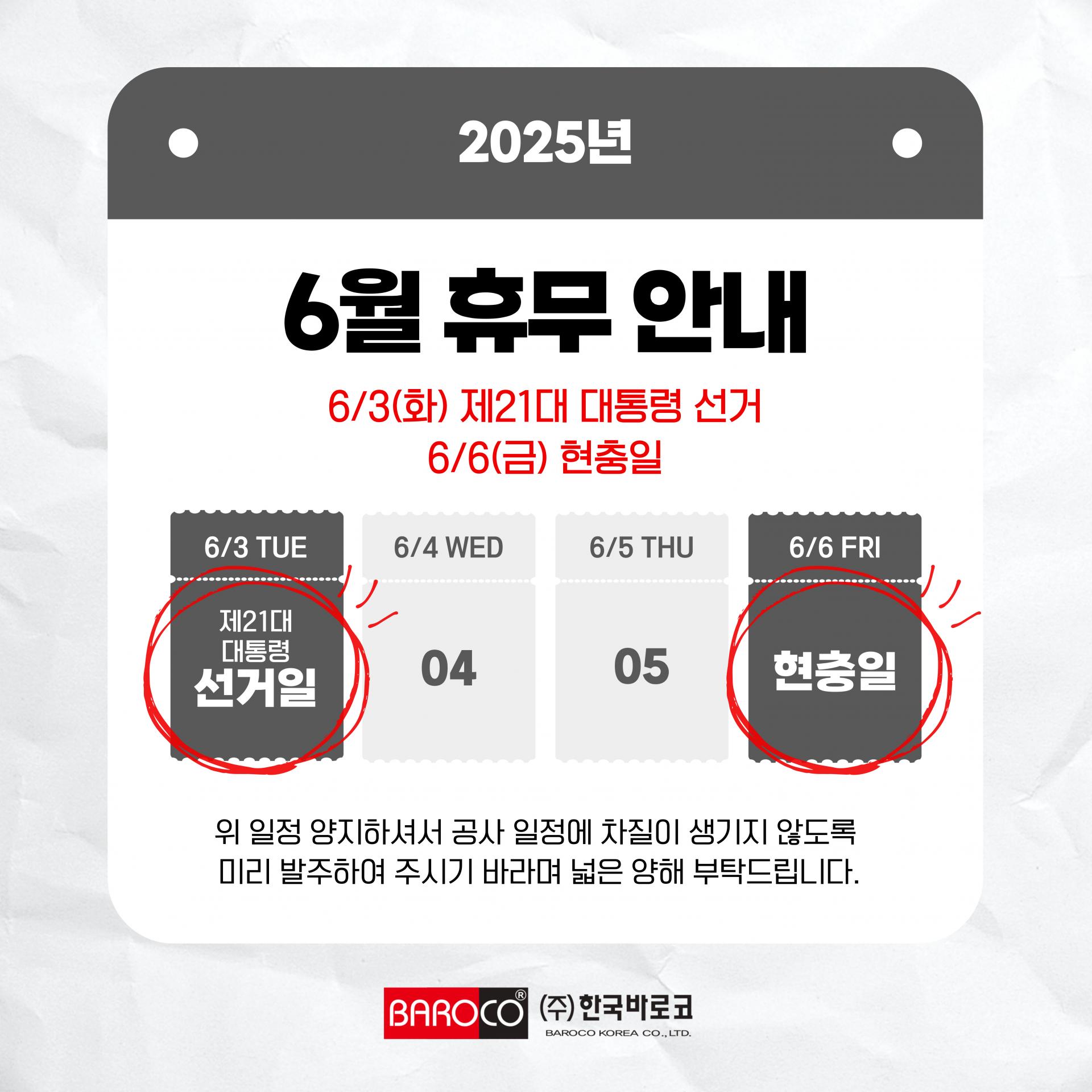 아래와 같이 6월 휴무일 안내드립니다.